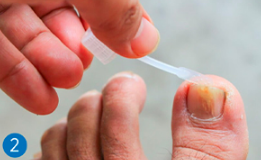 Apply the fungus nail patch. Secure the patch to the sides of the toes or fingers.
